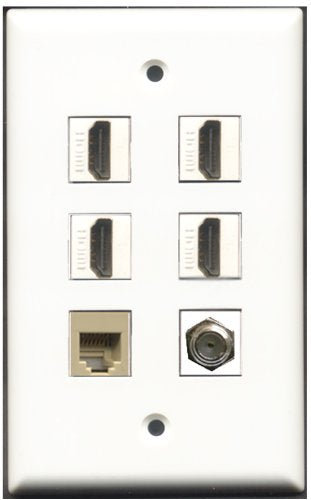 RiteAV - 4 Port HDMI 1 Coax Cable TV- F-Type 1 Phone RJ11 RJ12 Beige Wall Plate