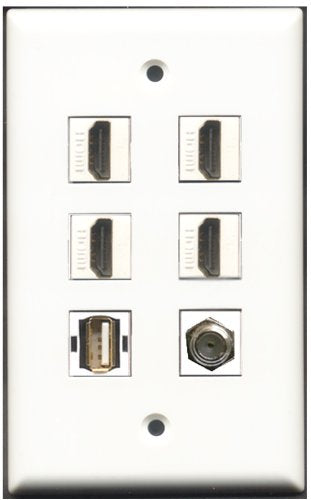 RiteAV - 4 Port HDMI 1 Coax Cable TV- F-Type 1 USB A-A Wall Plate
