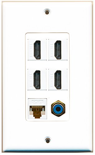 RiteAV - 4 Port HDMI 1 RCA Blue 1 Cat6 Ethernet White Wall Plate Decorative