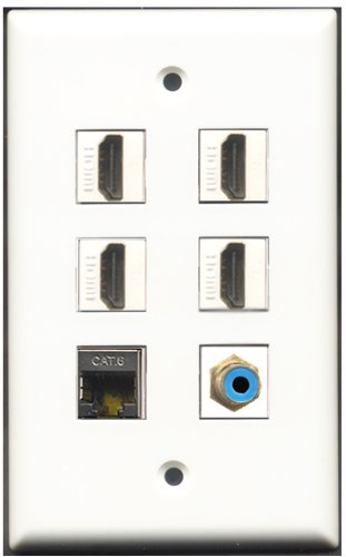 RiteAV - 4 Port HDMI 1 RCA Blue 1 Shielded Cat6 Ethernet Wall Plate