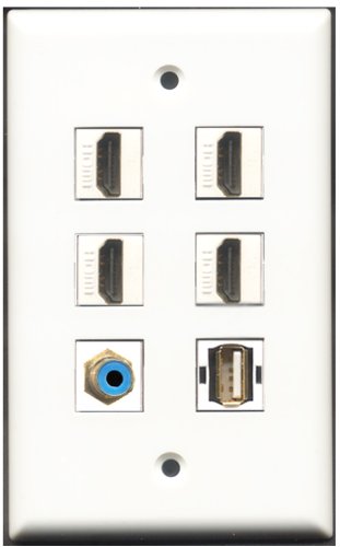 RiteAV - 4 Port HDMI 1 RCA Blue 1 USB A-A Wall Plate