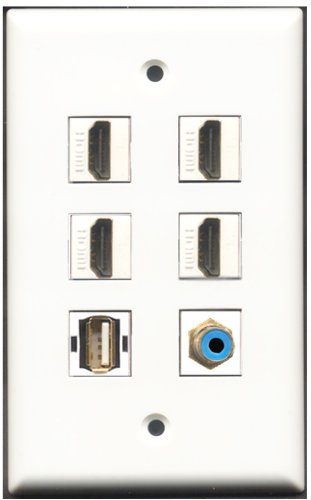 RiteAV - 4 Port HDMI 1 RCA Blue 1 USB A-A Wall Plate