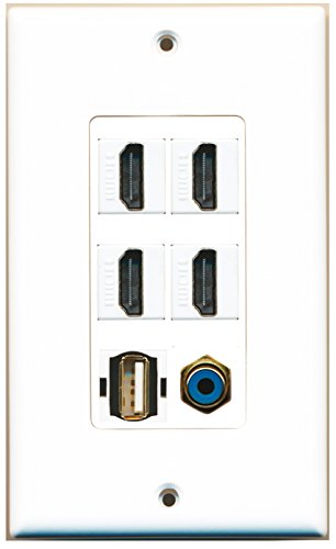 RiteAV - 4 Port HDMI 1 RCA Blue 1 USB A-A Wall Plate Decorative