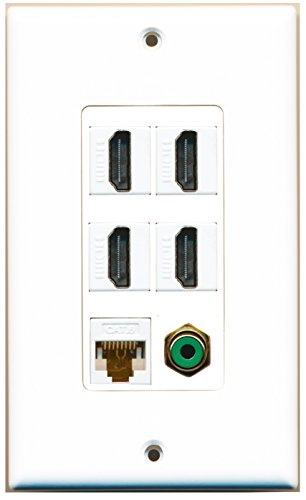 RiteAV - 4 Port HDMI 1 RCA Green 1 Cat6 Ethernet White Wall Plate Decorative