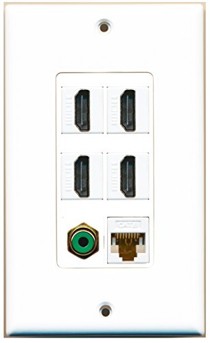 RiteAV - 4 Port HDMI 1 RCA Green 1 Cat6 Ethernet White Wall Plate Decorative