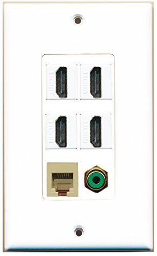 RiteAV - 4 Port HDMI 1 RCA Green 1 Phone RJ11 RJ12 Beige Wall Plate Decorative