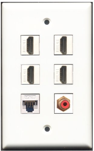RiteAV - 4 Port HDMI 1 RCA Red 1 Cat5e Ethernet White Wall Plate