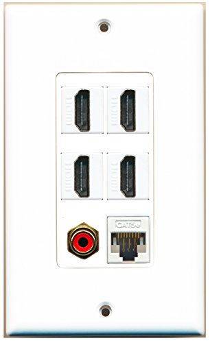 RiteAV - 4 Port HDMI 1 RCA Red 1 Cat5e Ethernet White Wall Plate Decorative