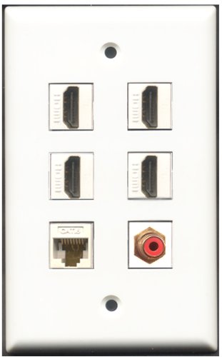 RiteAV - 4 Port HDMI 1 RCA Red 1 Cat6 Ethernet White Wall Plate