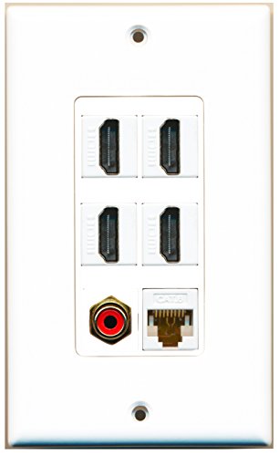 RiteAV - 4 Port HDMI 1 RCA Red 1 Cat6 Ethernet White Wall Plate Decorative