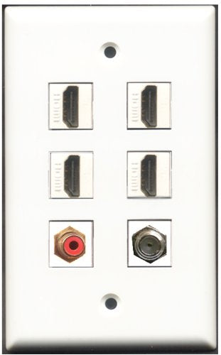 RiteAV - 4 Port HDMI 1 RCA Red 1 Coax Cable TV- F-Type Wall Plate