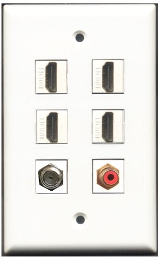 RiteAV - 4 Port HDMI 1 RCA Red 1 Coax Cable TV- F-Type Wall Plate