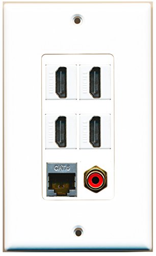 RiteAV - 4 Port HDMI 1 RCA Red 1 Shielded Cat6 Ethernet Wall Plate Decorative