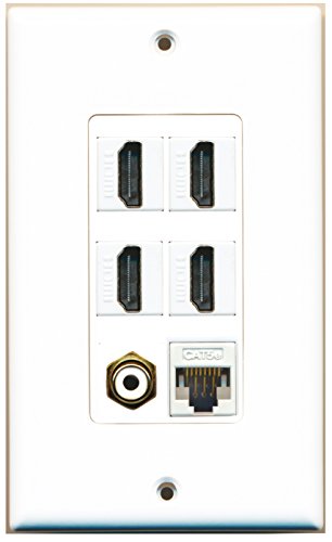 RiteAV - 4 Port HDMI 1 RCA White 1 Cat5e Ethernet White Wall Plate Decorative