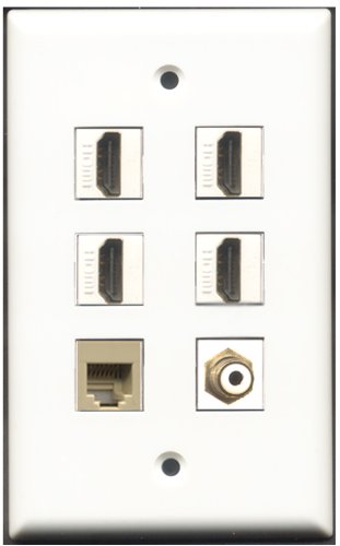 RiteAV - 4 Port HDMI 1 RCA White 1 Phone RJ11 RJ12 Beige Wall Plate