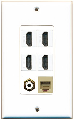 RiteAV - 4 Port HDMI 1 RCA White 1 Phone RJ11 RJ12 Beige Wall Plate Decorative
