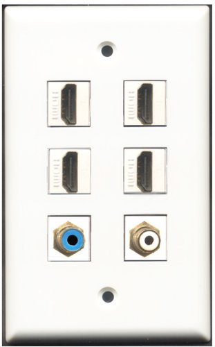 RiteAV - 4 Port HDMI 1 RCA White 1 RCA Blue Wall Plate