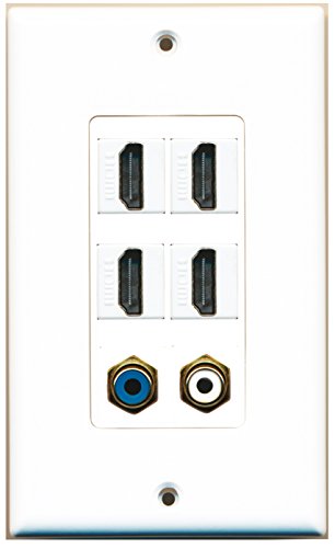 RiteAV - 4 Port HDMI 1 RCA White 1 RCA Blue Wall Plate Decorative
