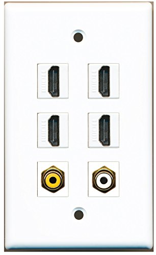 RiteAV - 4 Port HDMI 1 RCA White 1 RCA Yellow Wall Plate