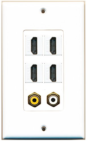 RiteAV - 4 Port HDMI 1 RCA White 1 RCA Yellow Wall Plate Decorative
