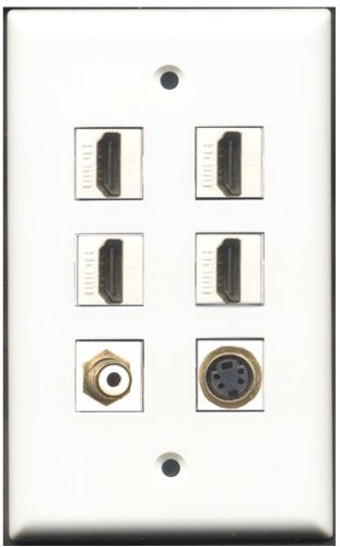 RiteAV - 4 Port HDMI 1 RCA White 1 S-Video Wall Plate