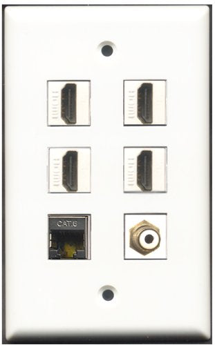 RiteAV - 4 Port HDMI 1 RCA White 1 Shielded Cat6 Ethernet Wall Plate