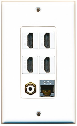 RiteAV - 4 Port HDMI 1 RCA White 1 Shielded Cat6 Ethernet Wall Plate Decorative