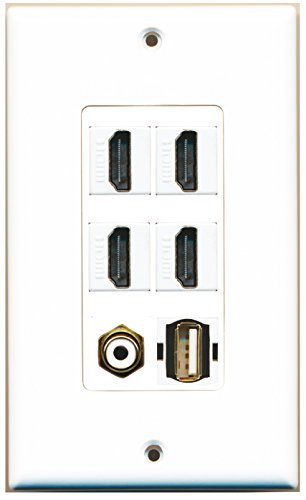 RiteAV - 4 Port HDMI 1 RCA White 1 USB A-A Wall Plate Decorative