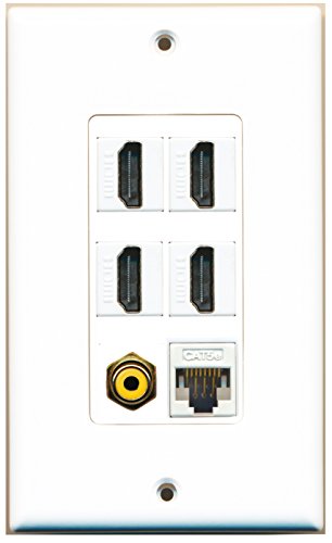 RiteAV - 4 Port HDMI 1 RCA Yellow 1 Cat5e Ethernet White Wall Plate Decorative