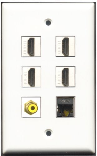 RiteAV - 4 Port HDMI 1 RCA Yellow 1 Shielded Cat6 Ethernet Wall Plate