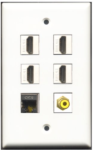 RiteAV - 4 Port HDMI 1 RCA Yellow 1 Shielded Cat6 Ethernet Wall Plate