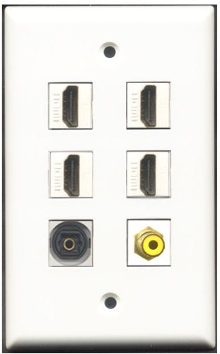 RiteAV - 4 Port HDMI 1 RCA Yellow 1 Toslink Wall Plate