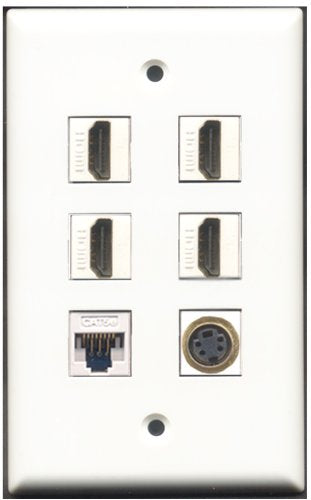 RiteAV - 4 Port HDMI 1 S-Video 1 Cat5e Ethernet White Wall Plate