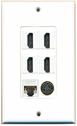 RiteAV - 4 Port HDMI 1 S-Video 1 Cat5e Ethernet White Wall Plate Decorative