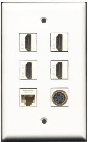 RiteAV - 4 Port HDMI 1 S-Video 1 Cat6 Ethernet White Wall Plate
