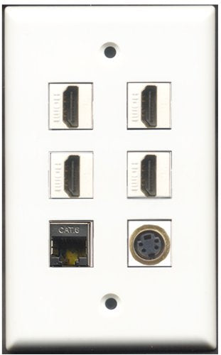 RiteAV - 4 Port HDMI 1 S-Video 1 Shielded Cat6 Ethernet Wall Plate