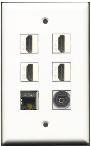 RiteAV - 4 Port HDMI 1 Shielded Cat6 Ethernet 1 Toslink Wall Plate