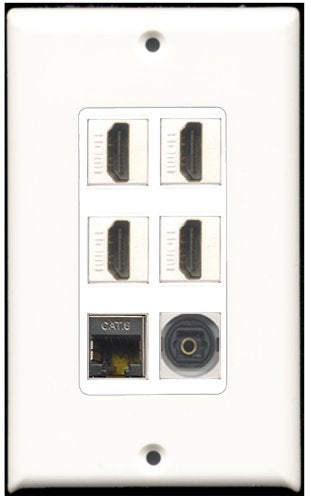 RiteAV - 4 Port HDMI 1 Shielded Cat6 Ethernet 1 Toslink Wall Plate White