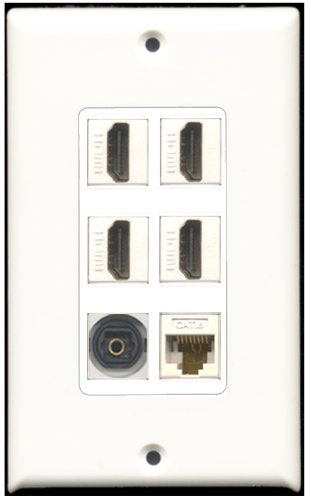 RiteAV - 4 Port HDMI 1 Toslink 1 Cat6 Ethernet White Wall Plate White