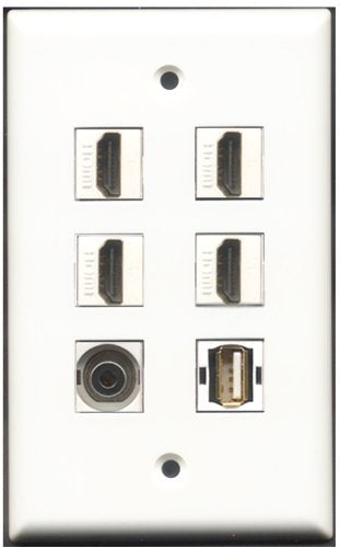RiteAV - 4 Port HDMI 1 USB A-A 1 3.5mm Wall Plate