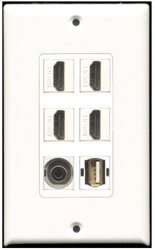 RiteAV - 4 Port HDMI 1 USB A-A 1 3.5mm Wall Plate White