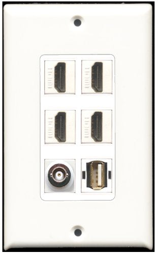 RiteAV - 4 Port HDMI 1 USB A-A 1 BNC Wall Plate White
