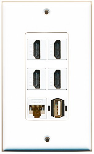 RiteAV - 4 Port HDMI 1 USB A-A 1 Cat6 Ethernet White Wall Plate Decorative