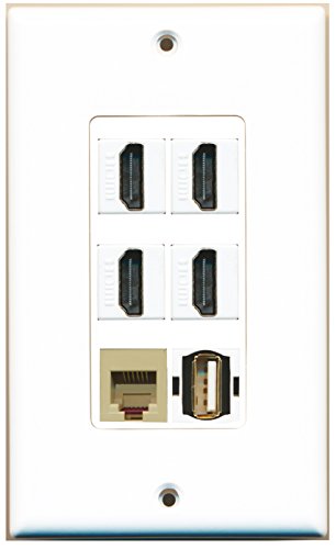 RiteAV - 4 Port HDMI 1 USB A-A 1 Phone RJ11 RJ12 Beige Wall Plate Decorative