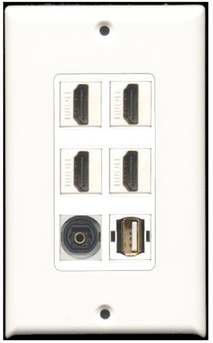 RiteAV - 4 Port HDMI 1 USB A-A 1 Toslink Wall Plate White