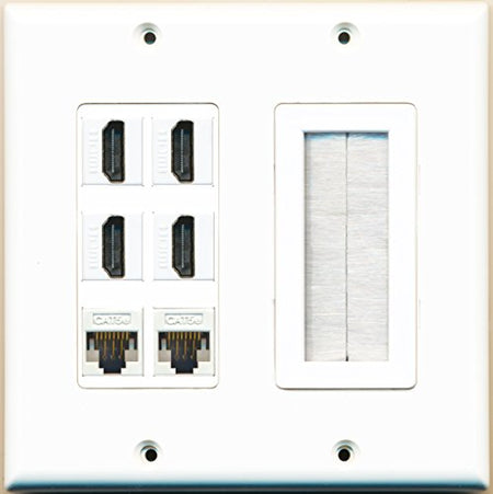 RiteAV - 4 Port HDMI 2 Cat5e Ethernet - Female + 1 Brush Port Wall Plate