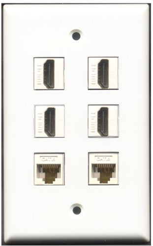 RiteAV - 4 Port HDMI 2 Port Cat6 Ethernet White Wall Plate