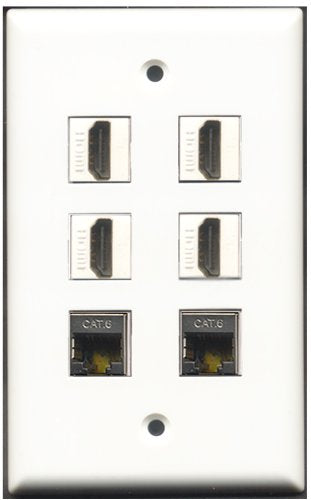 RiteAV - 4 Port HDMI 2 Port Shielded Cat6 Ethernet Wall Plate