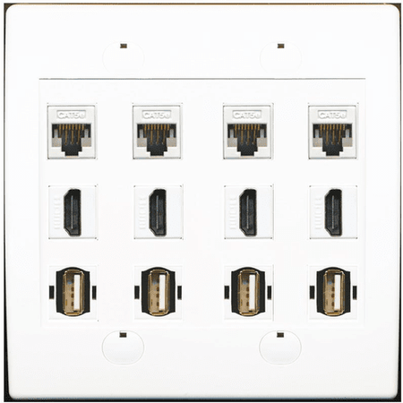 RiteAV 4 x CAT5E ETHERNET 4 x HDMI and 4 x USB-A-A Wall Plate Dual Gang White