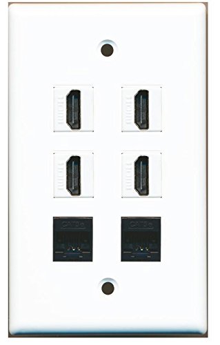 RiteAV - 4 x HDMI and 2 x Ethernet Cat5e Black Port Wall Plate White